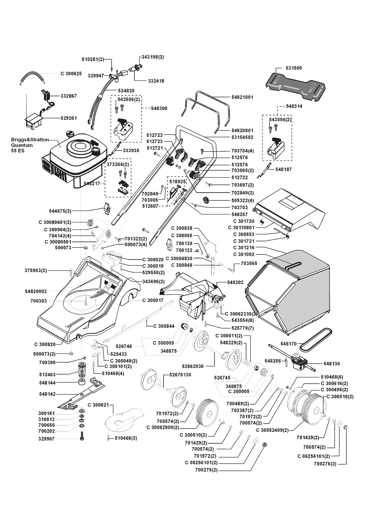 Zeichnungen von Concord Benzinrasenmäher 5300 BRE 01/2000 - 02/2000 mit der Geräte-Artikelnr. 110543: