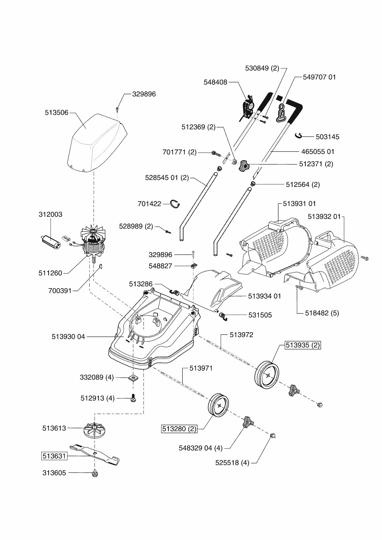 Zeichnungen von Ginge Elektrorasenmäher Favorit 38 E 01/2003 - 07/2003 mit der Geräte-Artikelnr. 121105:
