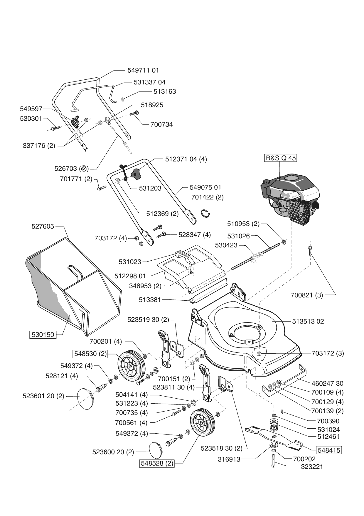 Zeichnungen von Powerline Benzinrasenmäher 4000 B 01/2003 - 07/2004 mit der Geräte-Artikelnr. 121127: