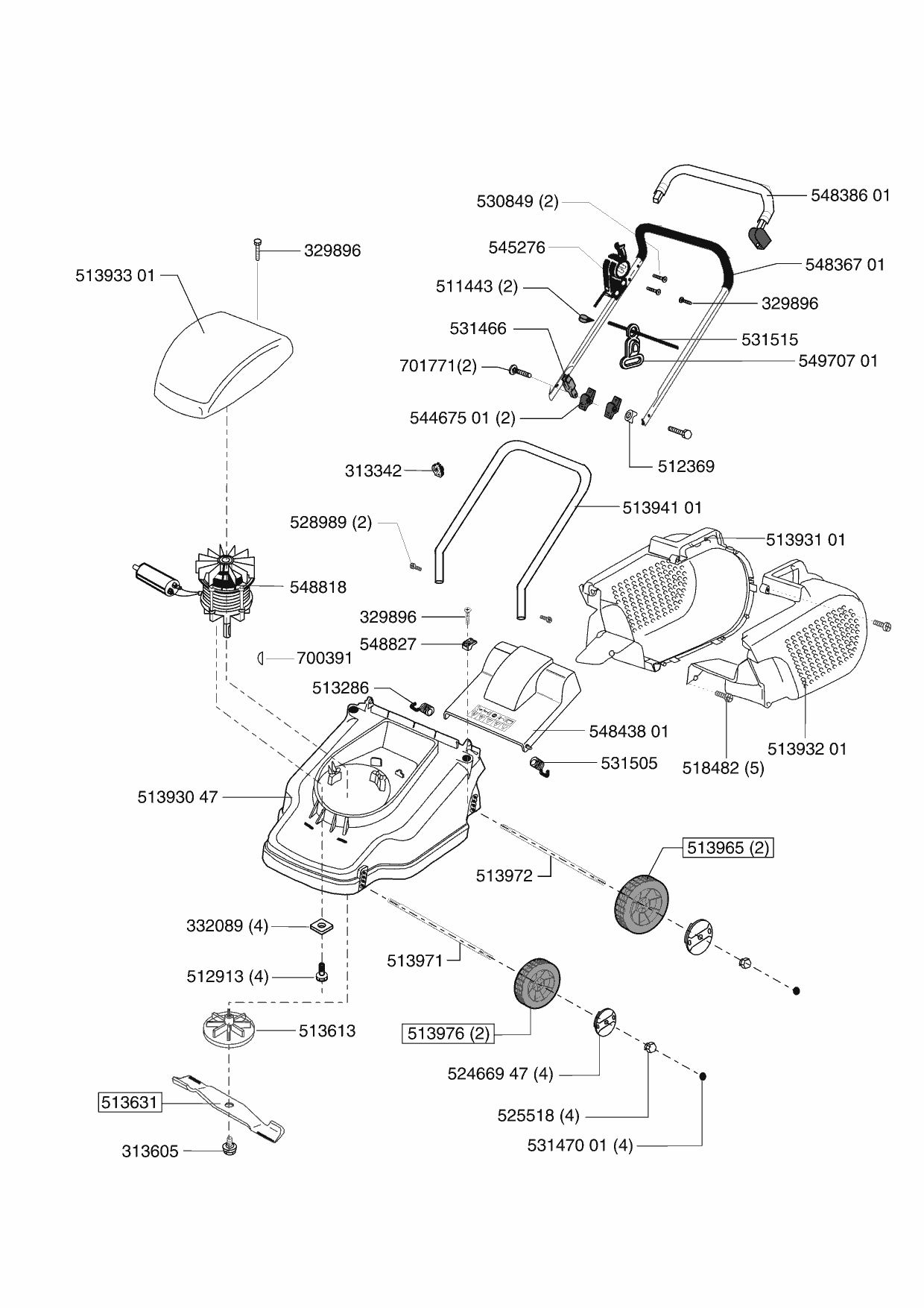Zeichnungen von Dehner Elektrorasenmäher ELO 38 01/2003 - 11/2003 mit der Geräte-Artikelnr. 120915: