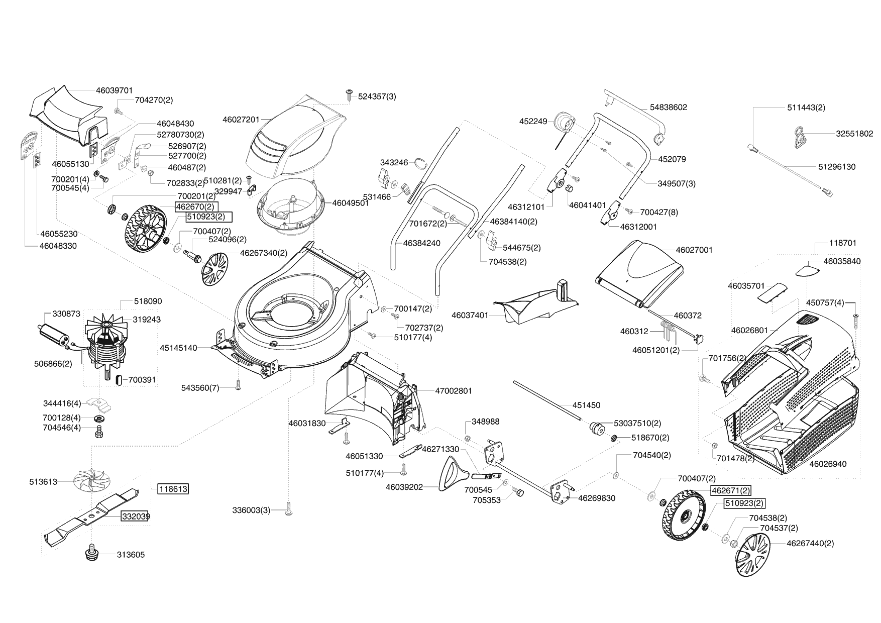 Zeichnungen von Ginge Elektrorasenmäher SILVER 470 E 01/2009 - 04/2012 mit der Geräte-Artikelnr. 119093: