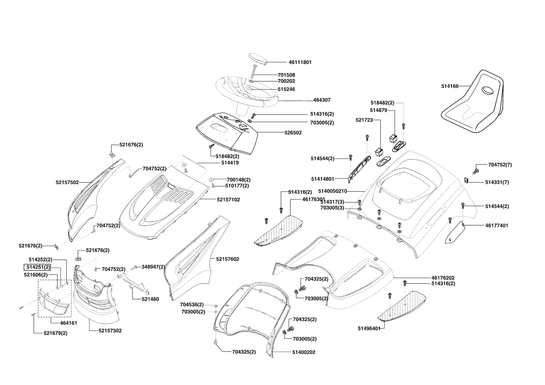 Zeichnungen von Powerline Rasentraktor T 15-92 HDE 01/2010 - 02/2011 mit der Geräte-Artikelnr. 118864: