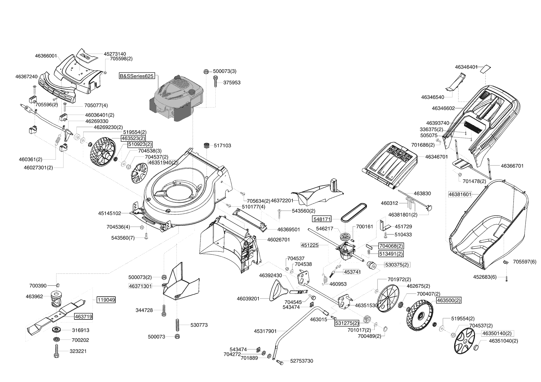 Zeichnungen von Powerline Benzinrasenmäher 4200 BR 01/2011 - 02/2011 mit der Geräte-Artikelnr. 119278:
