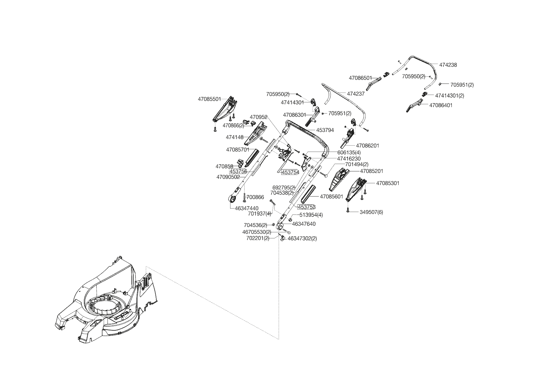 Zeichnungen von Powerline Benzinrasenmäher 5300 BRV ALU 01/2011 -04/2011 mit der Geräte-Artikelnr. 119307: