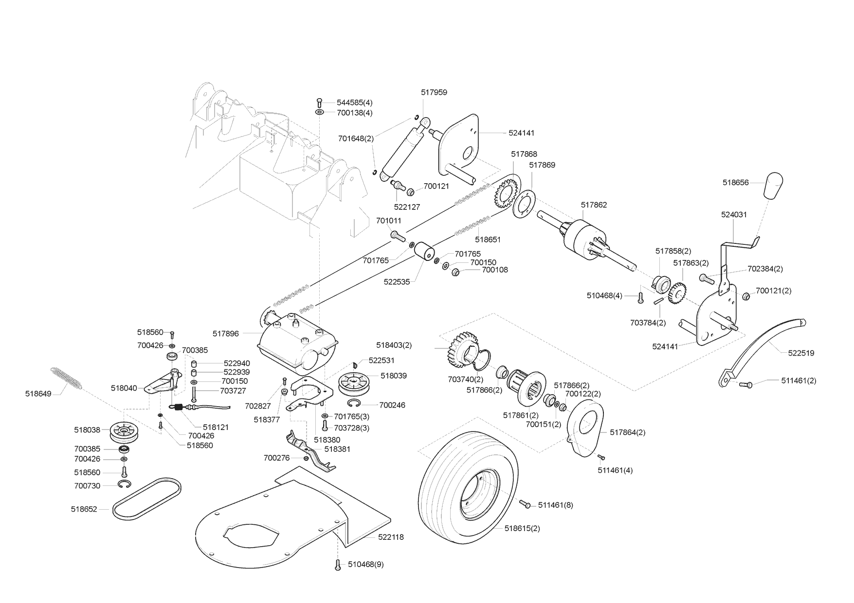 Zeichnungen von Master Aufsitzmäher Ride on 02/1996 - 06/1996 mit der Geräte-Artikelnr. 117294: