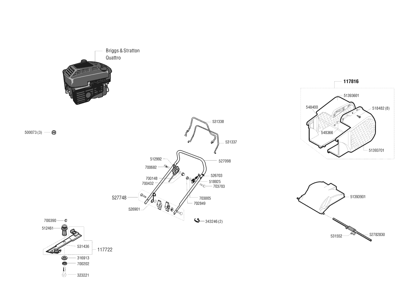 Zeichnungen von Gardol Benzinrasenmäher 4740 BR 02/1999 - 11/1999 mit der Geräte-Artikelnr. 117979: