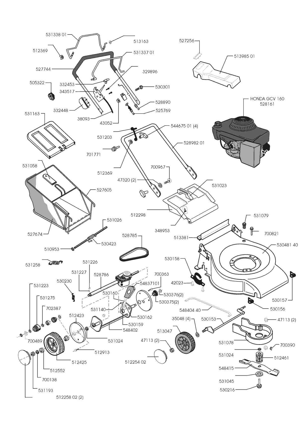 Zeichnungen von Euro Line Benzinrasenmäher 5300 HR 02/2000 - 02/2001 mit der Geräte-Artikelnr. 120866:
