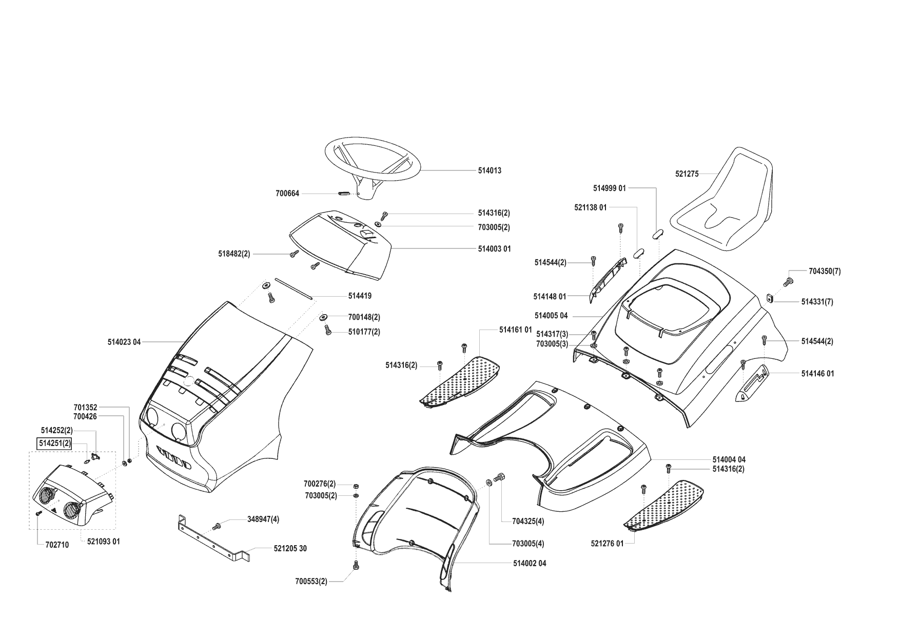 Zeichnungen von Ginge Rasentraktor T 800 02/2001 - 02/2002 mit der Geräte-Artikelnr. 118270: