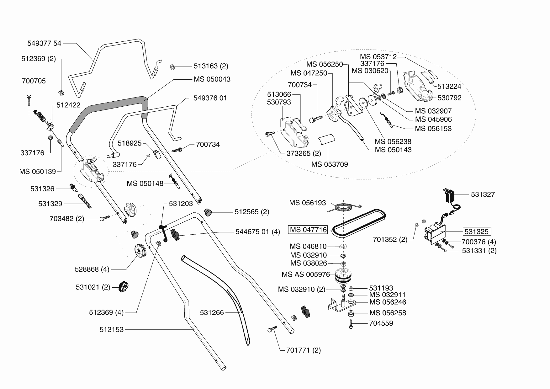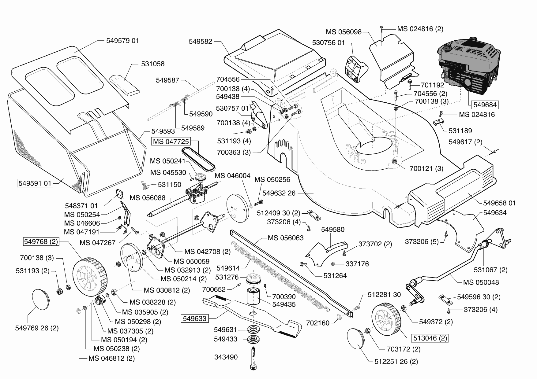 Zeichnungen von Dehner Benzinrasenmäher B 53 HESZ 02/2002 -04/2003 mit der Geräte-Artikelnr. 120916: