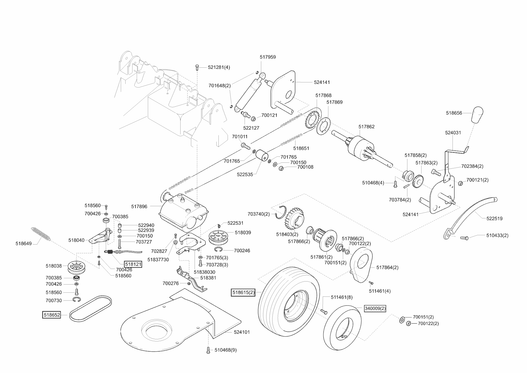 Zeichnungen von Master Aufsitzmäher Rider 9-55 02/2002 - 08/2002 mit der Geräte-Artikelnr. 117127: