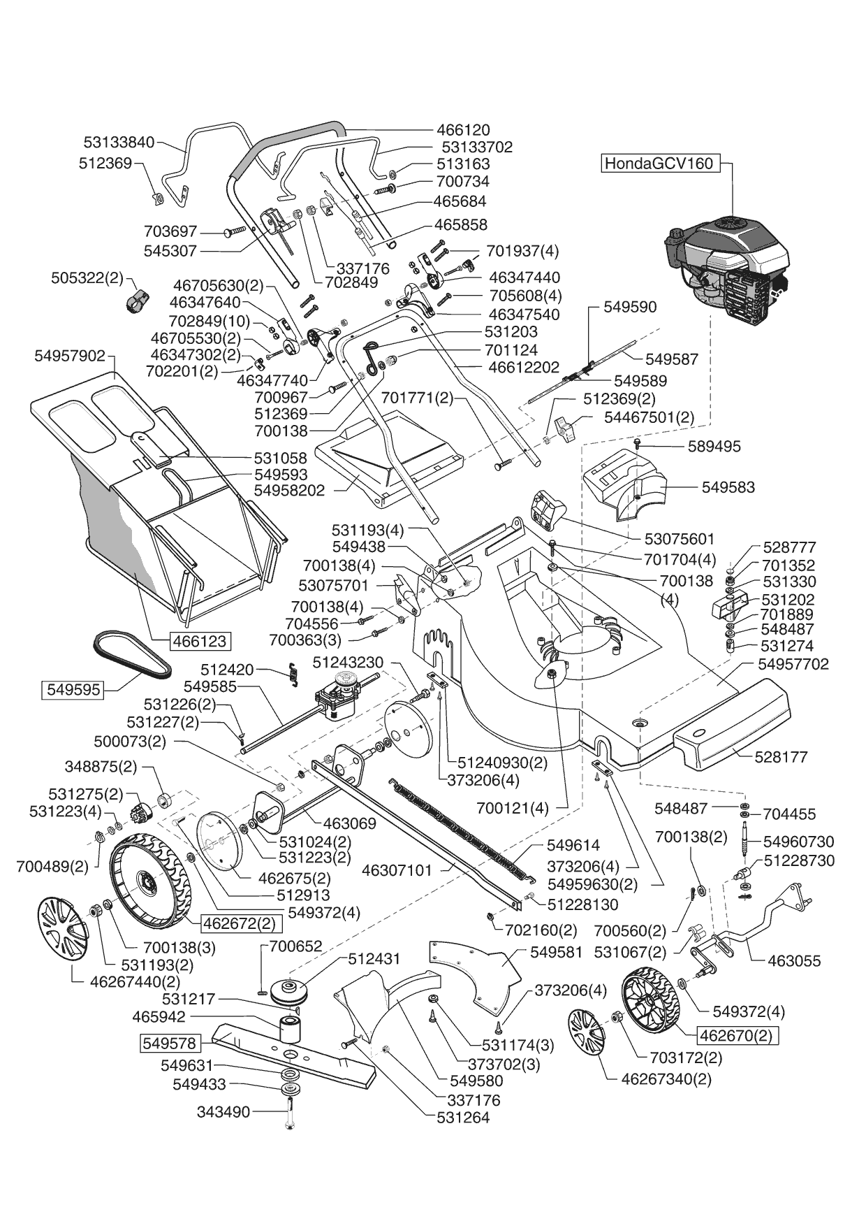 Zeichnungen von Powerline Benzinrasenmäher 4800 BR-H 02/2008 - 11/2008 mit der Geräte-Artikelnr. 121317: