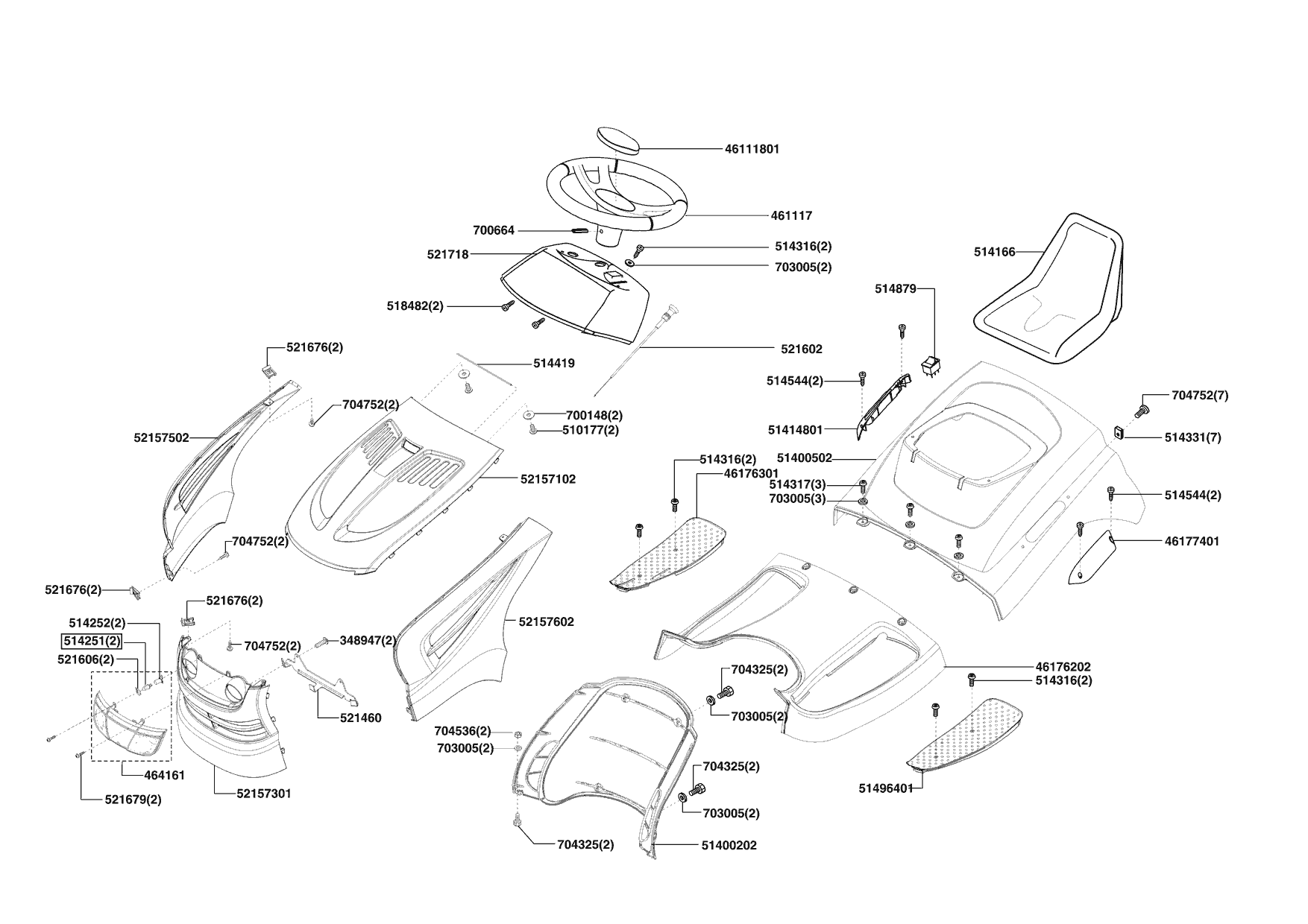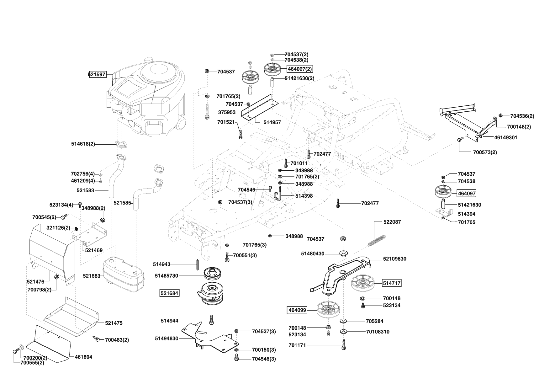 Zeichnungen von Powerline Rasentraktor T 20-102 HD 02/2008 - 11/2008 mit der Geräte-Artikelnr. 118919: