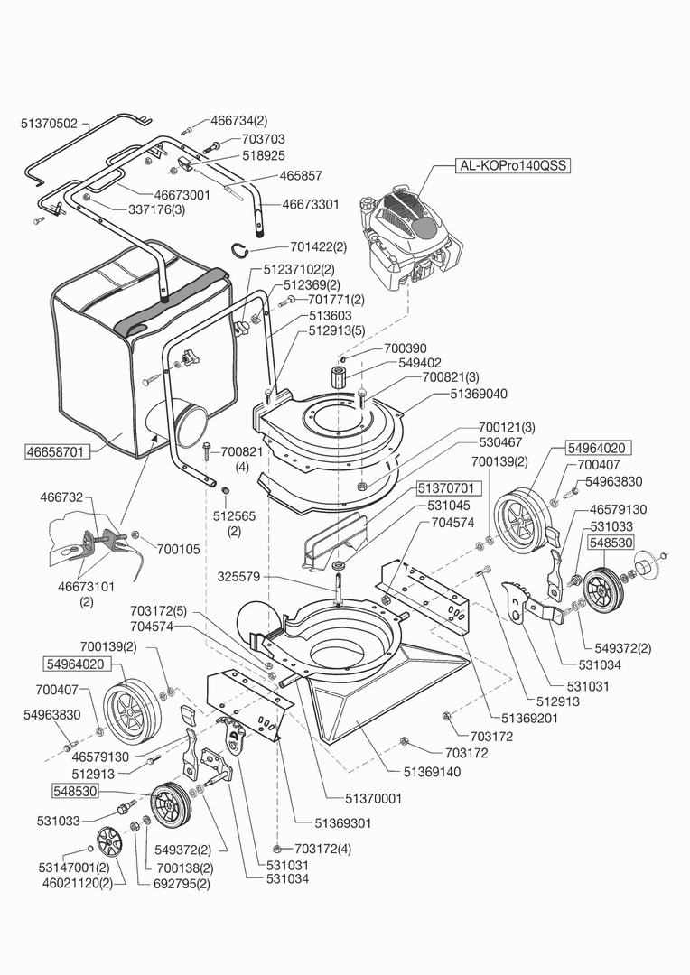 Zeichnungen von AL-KO Laubsauger 75 B Hurricane 02/2012 - 12/2014 mit der Geräte-Artikelnr. 121605: