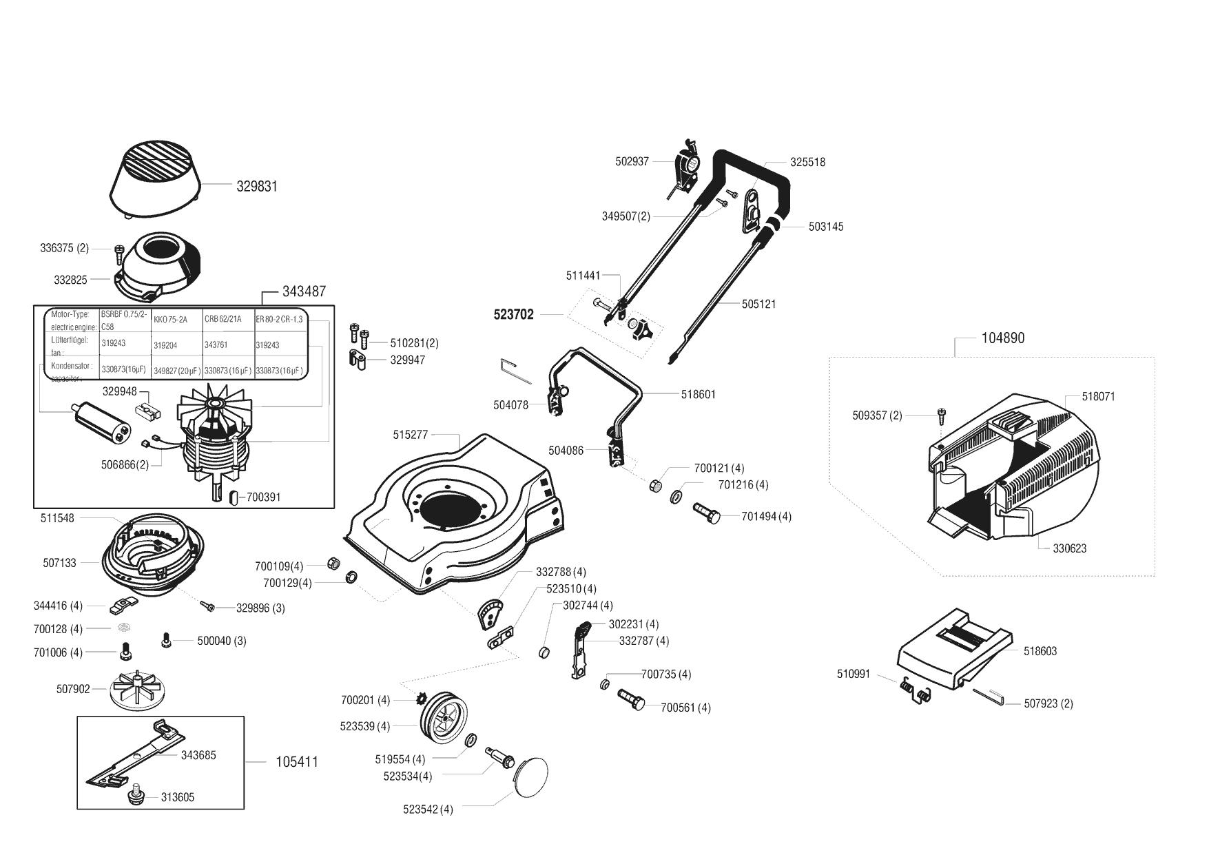 Zeichnungen von Top Garden Elektrorasenmäher 4000 E 03/1996 - 03/1997 mit der Geräte-Artikelnr. 117173: