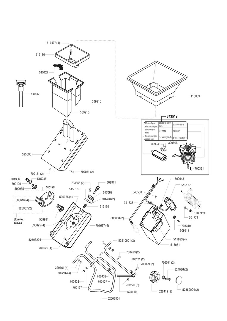 Zeichnungen von AL-KO Gartenhäcksler Dynamic H 2200 RS 03/1998 - 02/2000 mit der Geräte-Artikelnr. 117439: