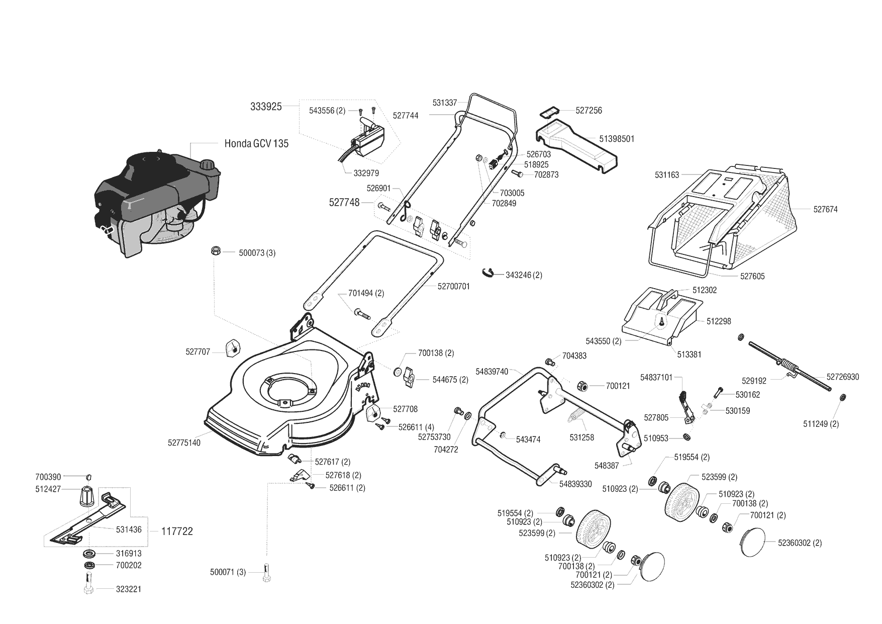 Zeichnungen von Euro Line Benzinrasenmäher 4700 H 03/1999 - 02/2001 mit der Geräte-Artikelnr. 117922: