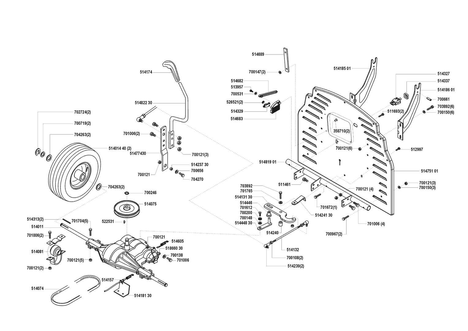 Zeichnungen von AL-KO Rasentraktor T-800 03/2000 - 09/2000 mit der Geräte-Artikelnr. 110941: