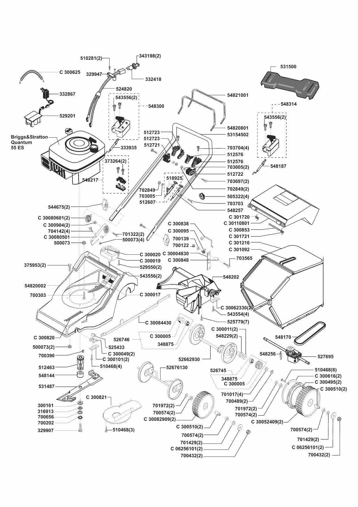 Zeichnungen von Concord Benzinrasenmäher 5300 BRE 03/2001 - 02/2002 mit der Geräte-Artikelnr. 110543: