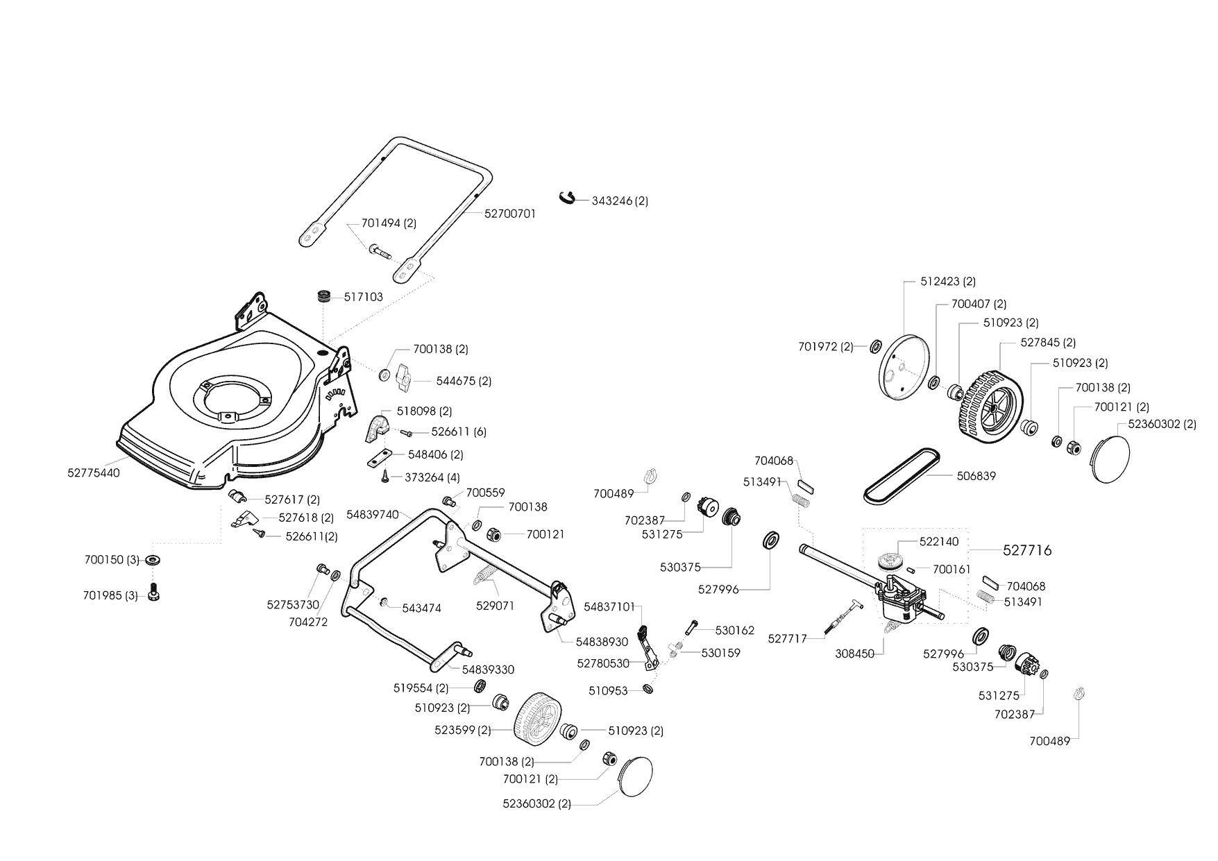 Zeichnungen von Euro Line Benzinrasenmäher 4700 HR 03/2001 - 10/2001 mit der Geräte-Artikelnr. 118161:
