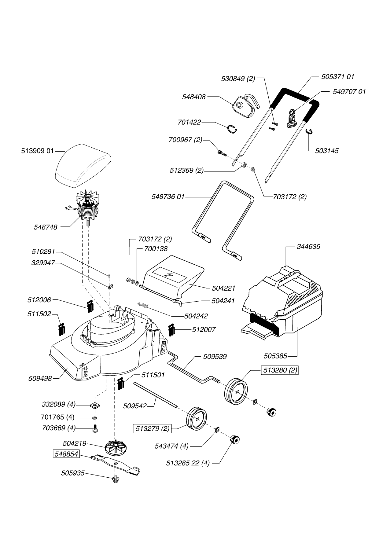 Zeichnungen von Dehner Elektrorasenmäher Gute Wahl 32 E 03/2003 - 12/2003 mit der Geräte-Artikelnr. 121120: