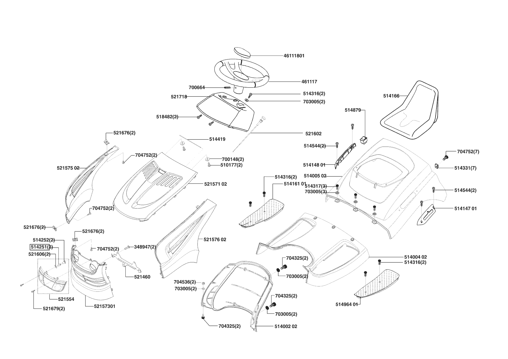 Zeichnungen von Powerline Rasentraktor T 18-102 HD II 03/2005 - 10/2007 mit der Geräte-Artikelnr. 118720: