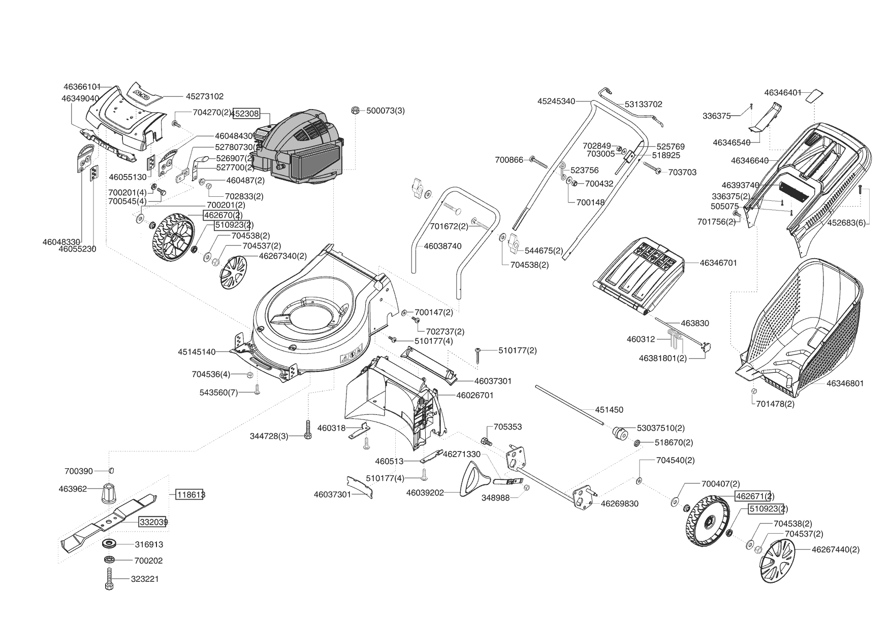 Zeichnungen von Dehner Benzinrasenmäher SILVER 470 B EDITION 03/2008 - 01/2009 mit der Geräte-Artikelnr. 119099: