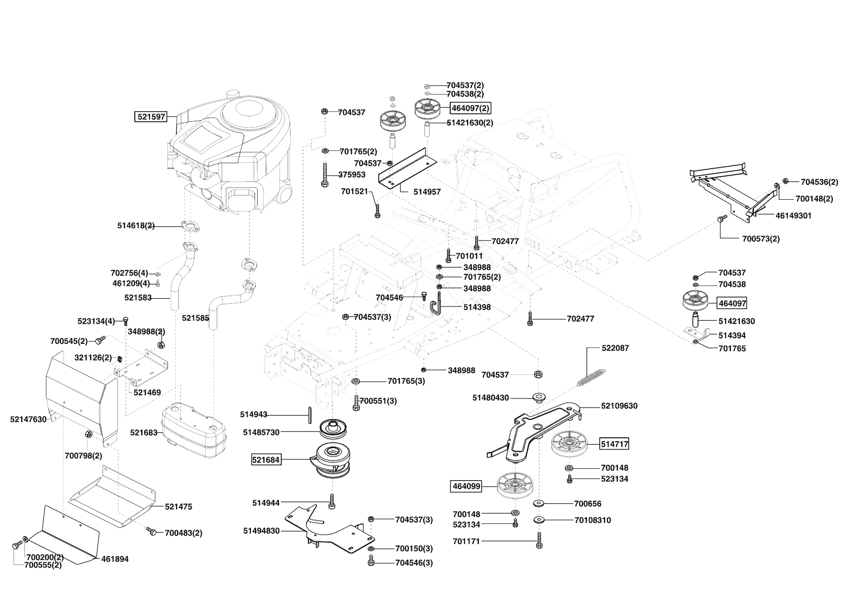 Zeichnungen von Powerline Rasentraktor T20/102 HDE 03/2009 - 02/2011 mit der Geräte-Artikelnr. 118981: