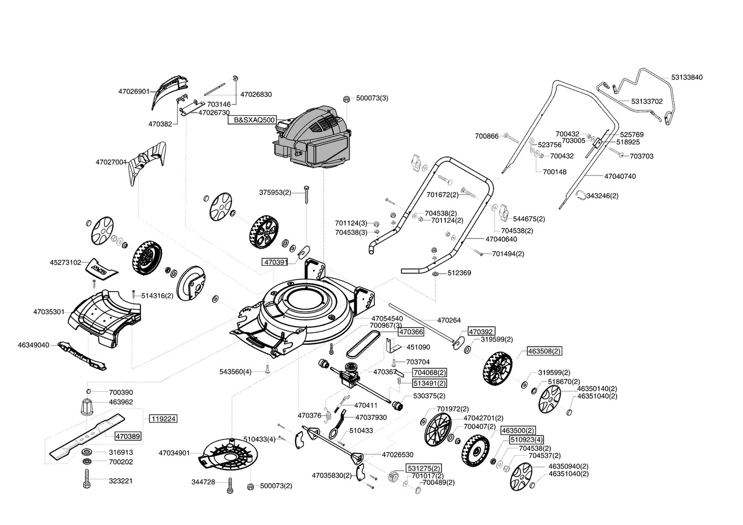 Zeichnungen von AL-KO Mulchmäher Silver 460 BR Bio 03/2009 - 05/2009 mit der Geräte-Artikelnr. 119179: