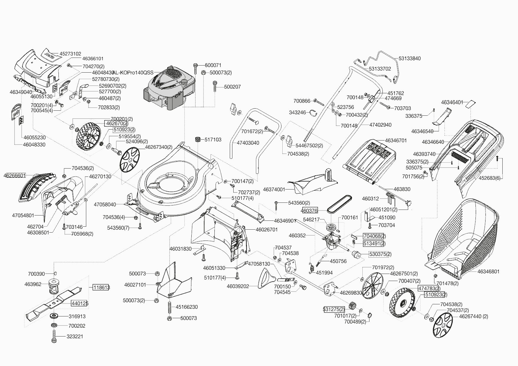 Hier finden Sie alle Ersatzteile für AL-KO Benzinrasenmäher Silver Premium 470 BR-A (119713) 03/2015 - 08/2016: