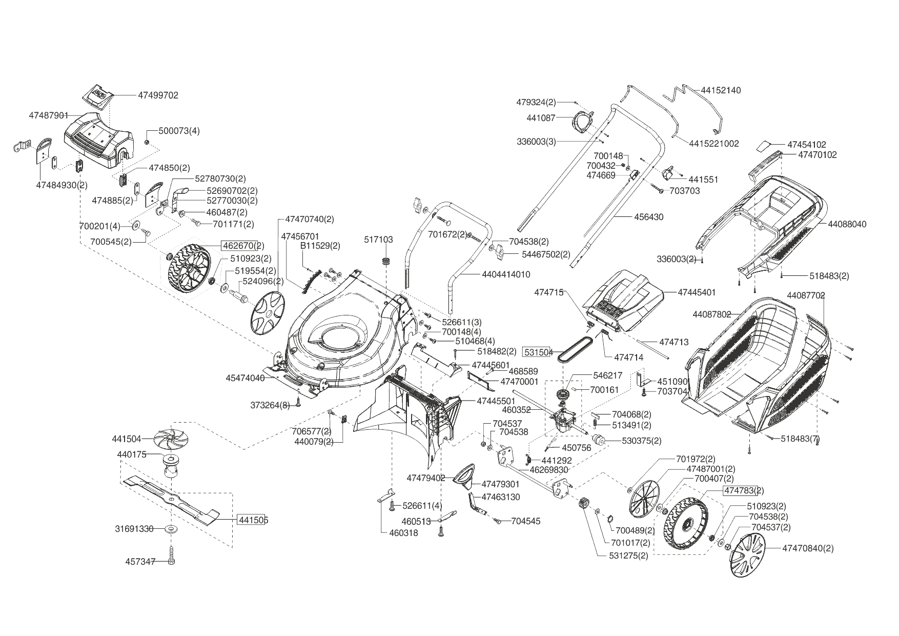 Zeichnung AL-KO Akku-Rasenmäher 46.5 LI SP MOWEO (119864) 03/2019 - 07/2019: