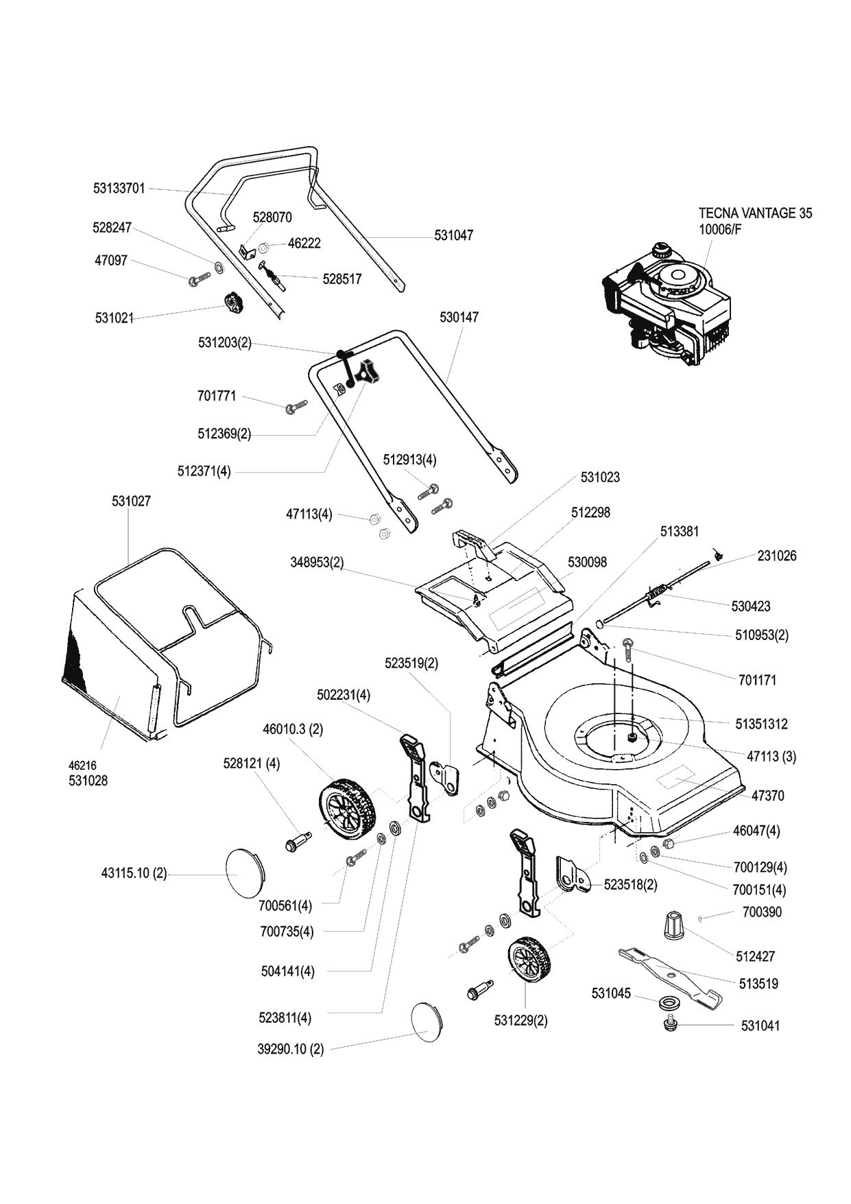 Zeichnungen von Orion Benzinrasenmäher 444 A 04/1998 - 12/1998 mit der Geräte-Artikelnr. 120169: