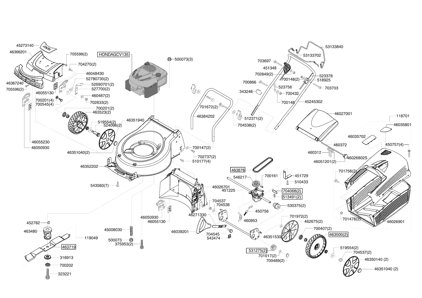 Zeichnungen von Powerline Benzinrasenmäher 4200 BR-H 04/2008 - 01/2009 mit der Geräte-Artikelnr. 119119: