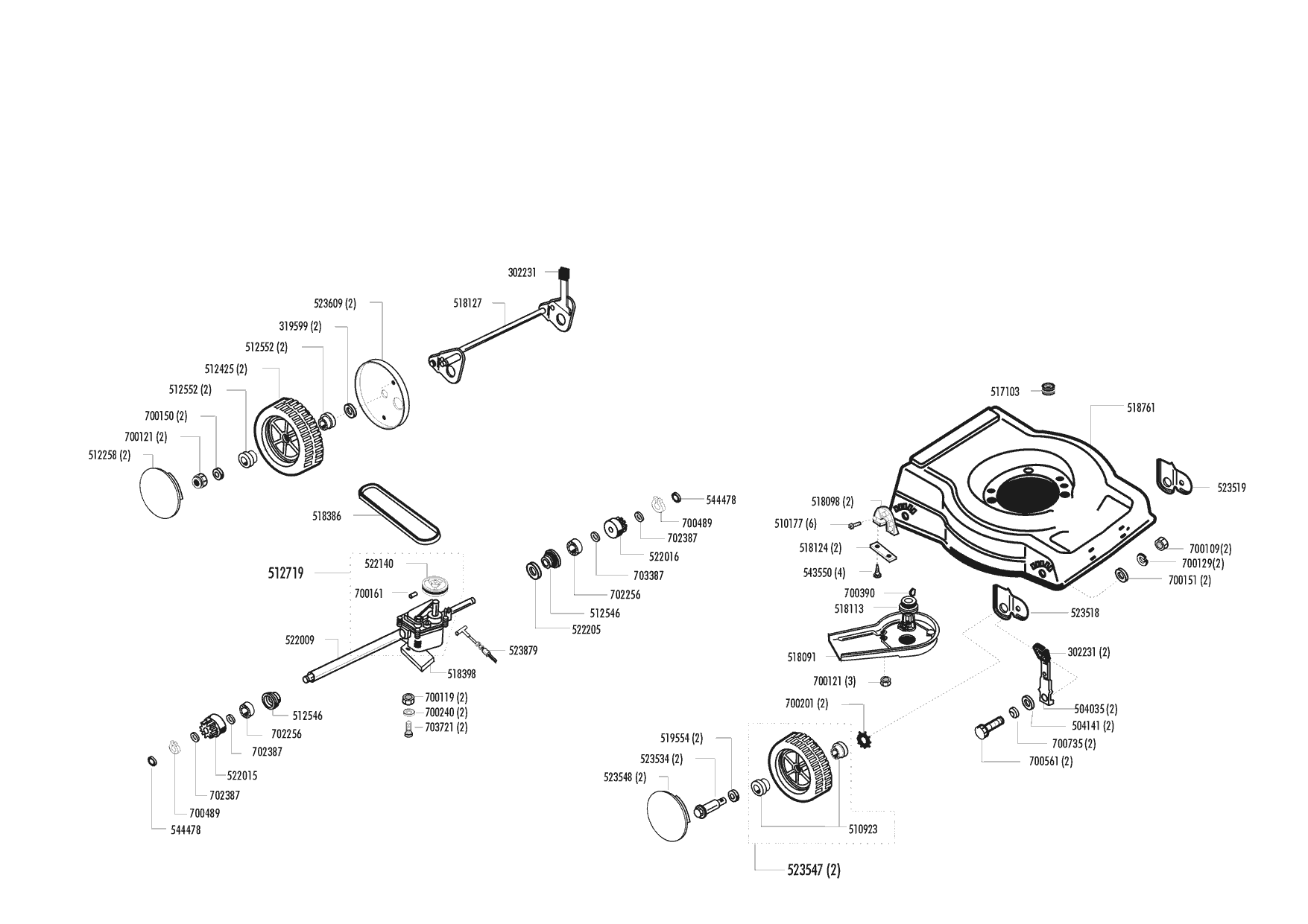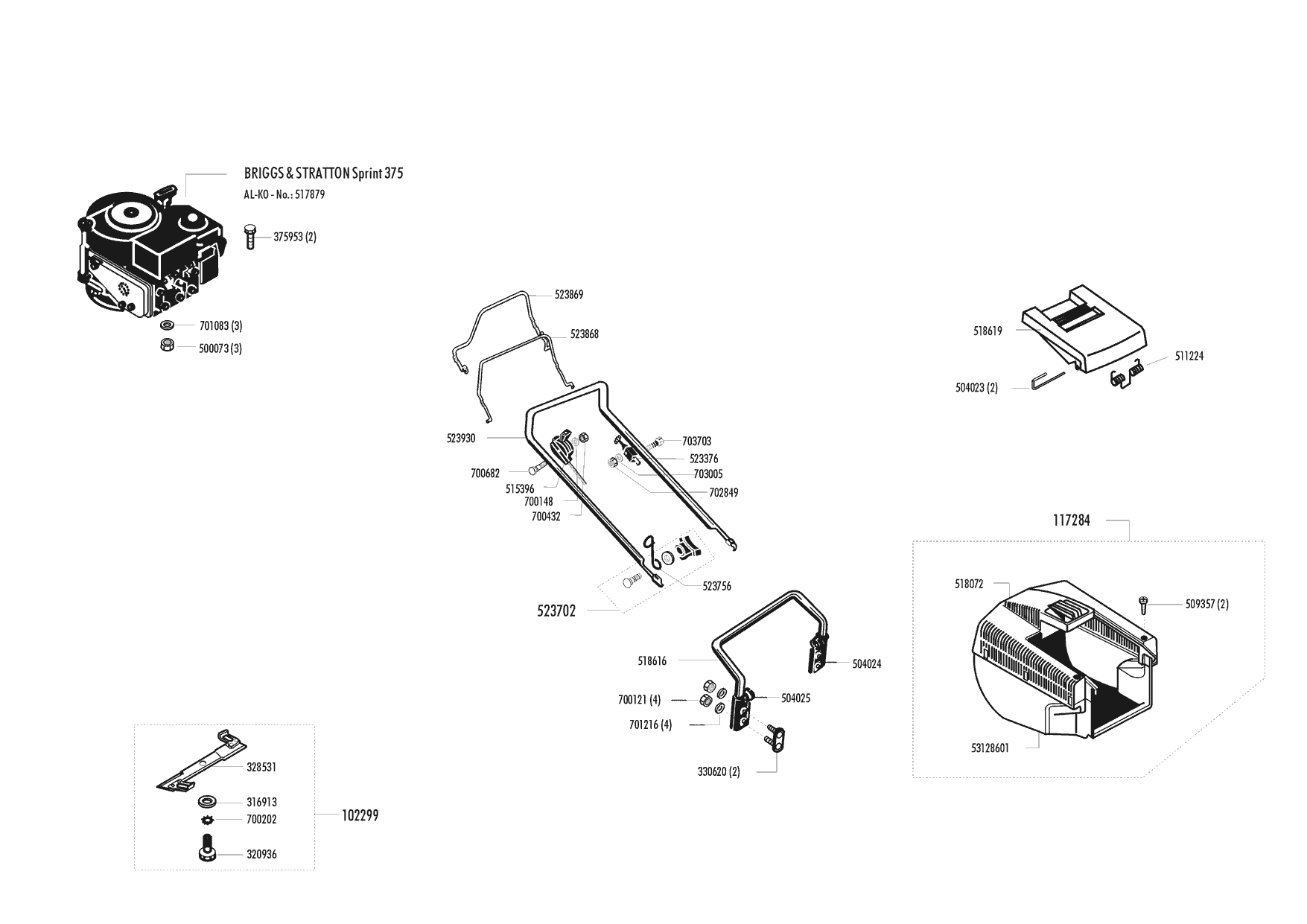 Zeichnungen von Top Garden Benzinrasenmäher 4800 BR 04/996 - 06/1996 mit der Geräte-Artikelnr. 117177: