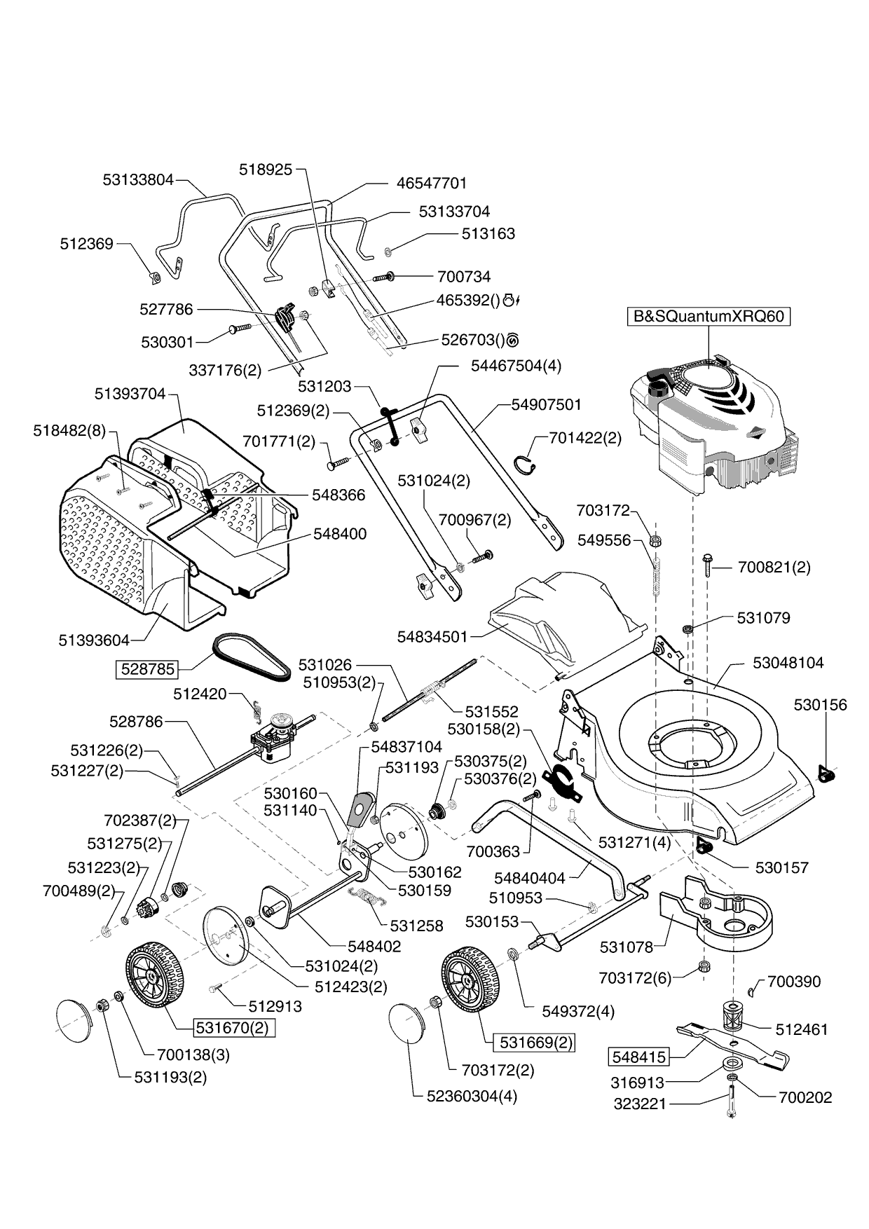 Zeichnungen von Ginge Benzinrasenmäher CF 520 B AUTO 05/2006 - 05/2007 mit der Geräte-Artikelnr. 121247: