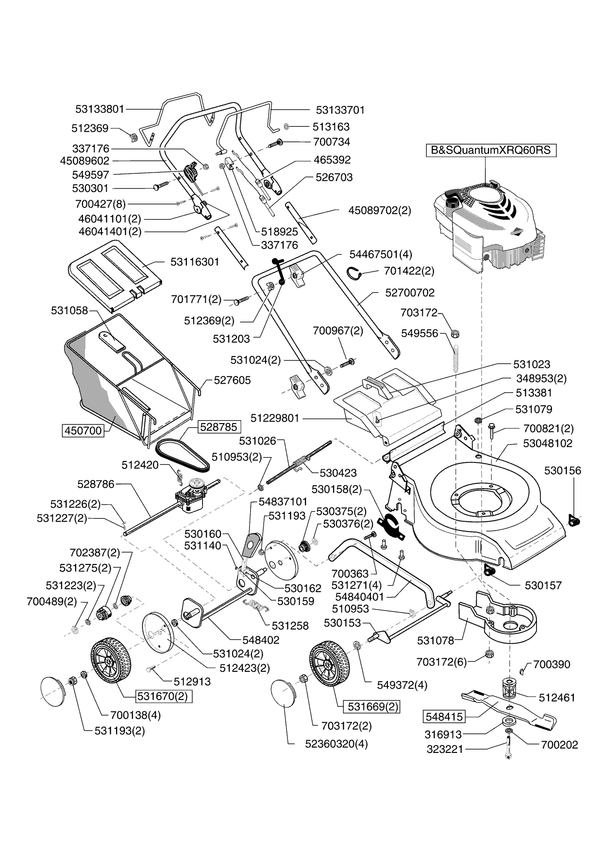 Zeichnungen von Powerline Benzinrasenmäher 5200 BR 05/2006 - 05/2007 mit der Geräte-Artikelnr. 121208: