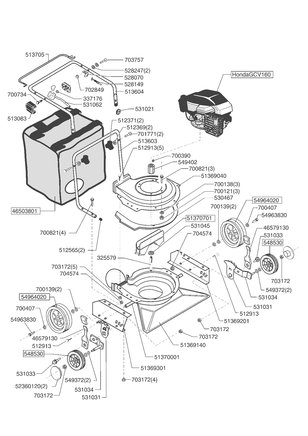 Zeichnungen von Euro Line Laubsauger 750 B 05/2007 - 05/2009 mit der Geräte-Artikelnr. 121150: