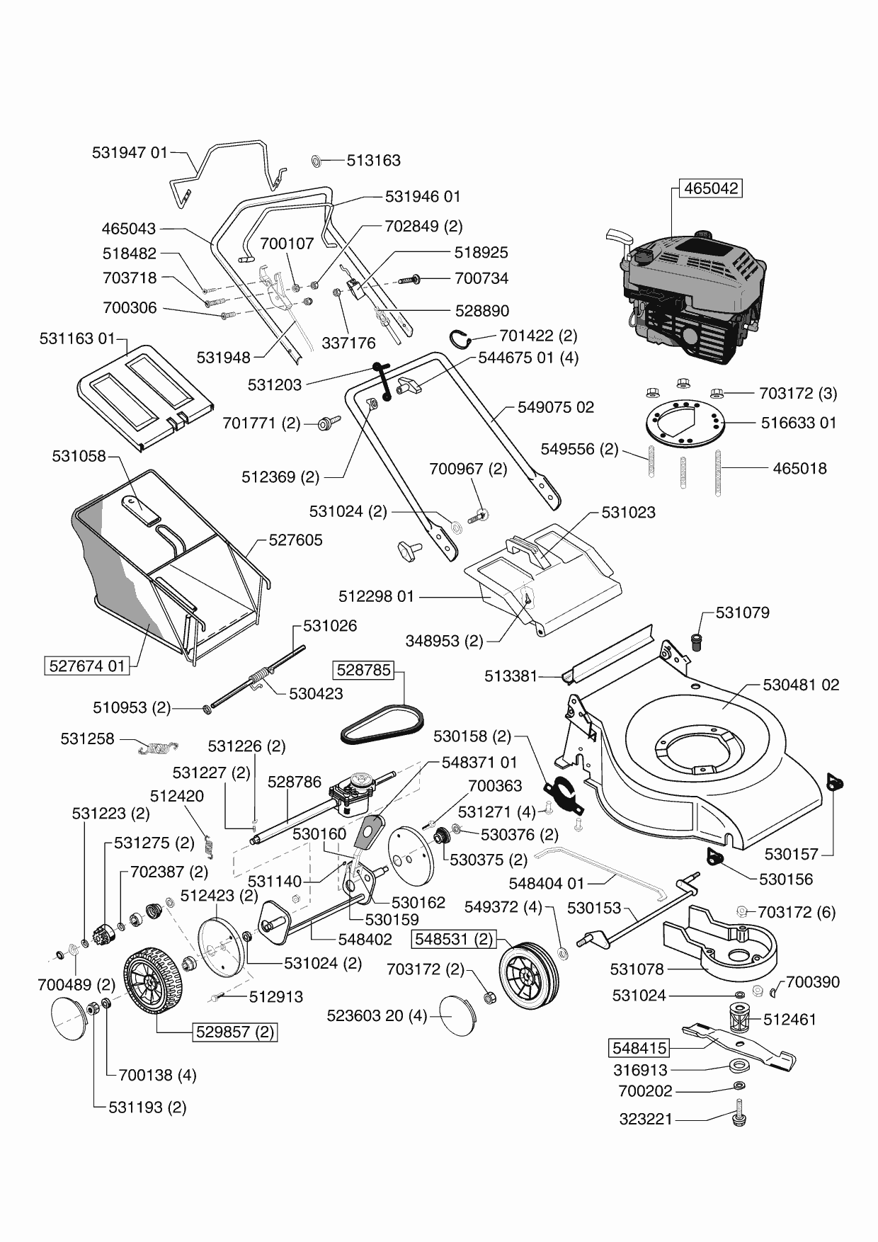 Zeichnungen von Powerline Benzinrasenmäher 5200 BRA 06/2002 - 07/2003 mit der Geräte-Artikelnr. 121075: