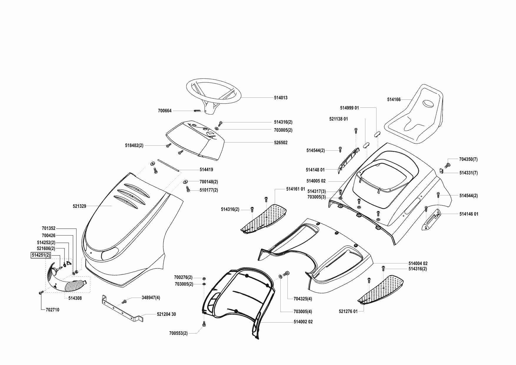 Zeichnungen von Concord Rasentraktor T13-85 06/2004 - 04/2004 mit der Geräte-Artikelnr. 110820: