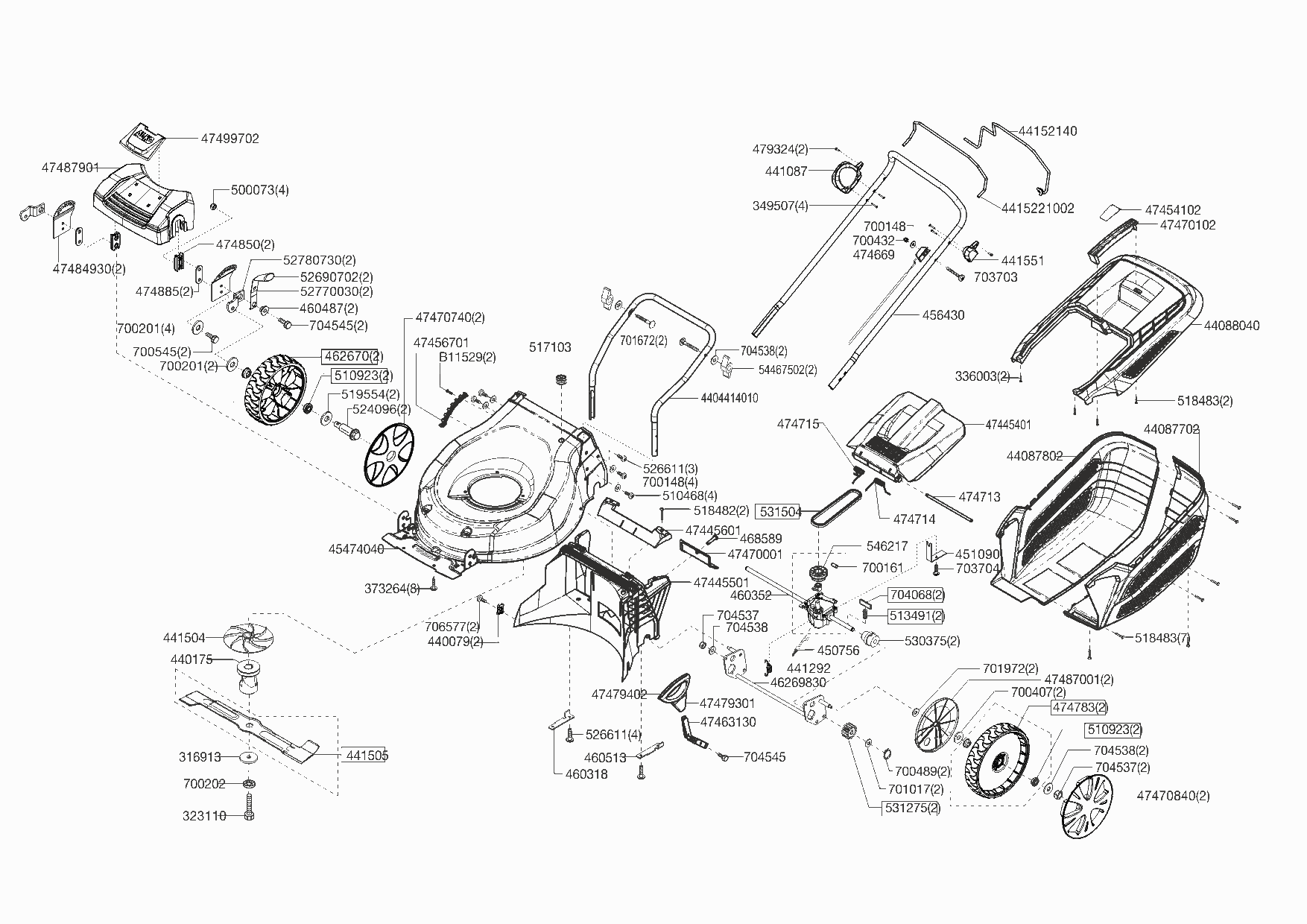 Zeichnung AL-KO Akku-Rasenmäher 46.5 LI SP MOWEO (119707) 06/2015 - 08/2016: