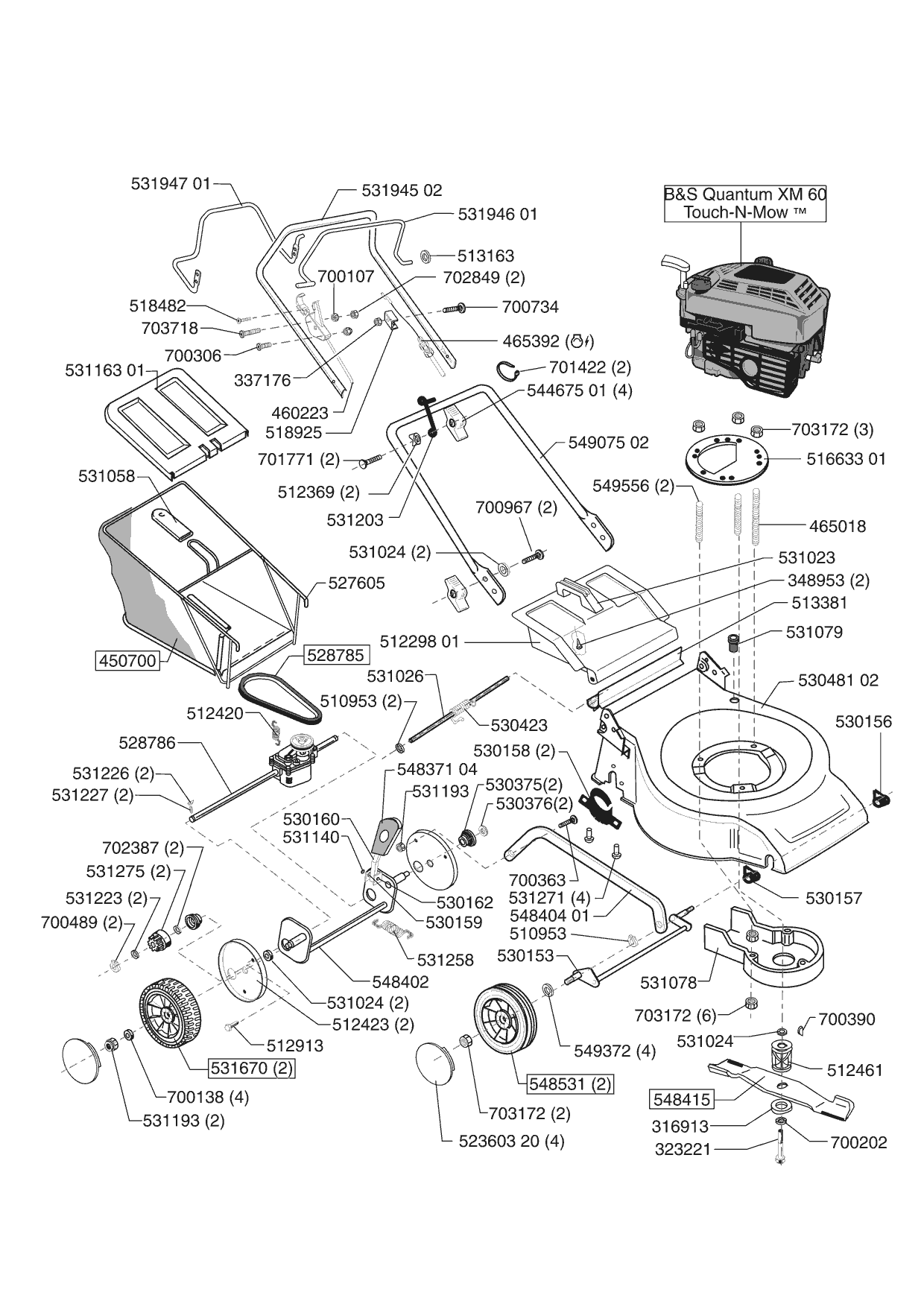 Zeichnungen von Powerline Benzinrasenmäher 5200 BRA 07/2004 - 04/2005 mit der Geräte-Artikelnr. 121075: