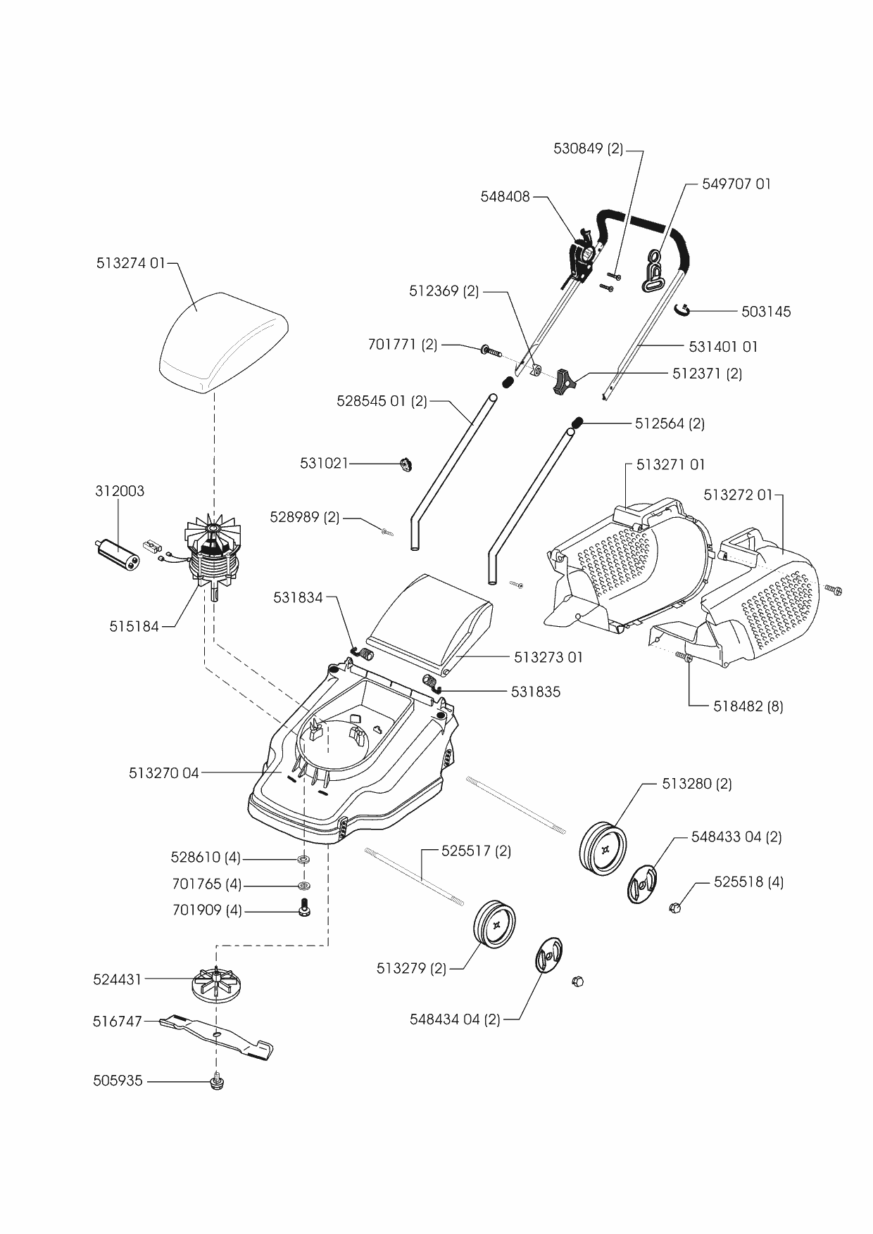 Zeichnungen von Ginge Elektrorasenmäher Classic 32 E 08/2001 - 11/2002 mit der Geräte-Artikelnr. 120967: