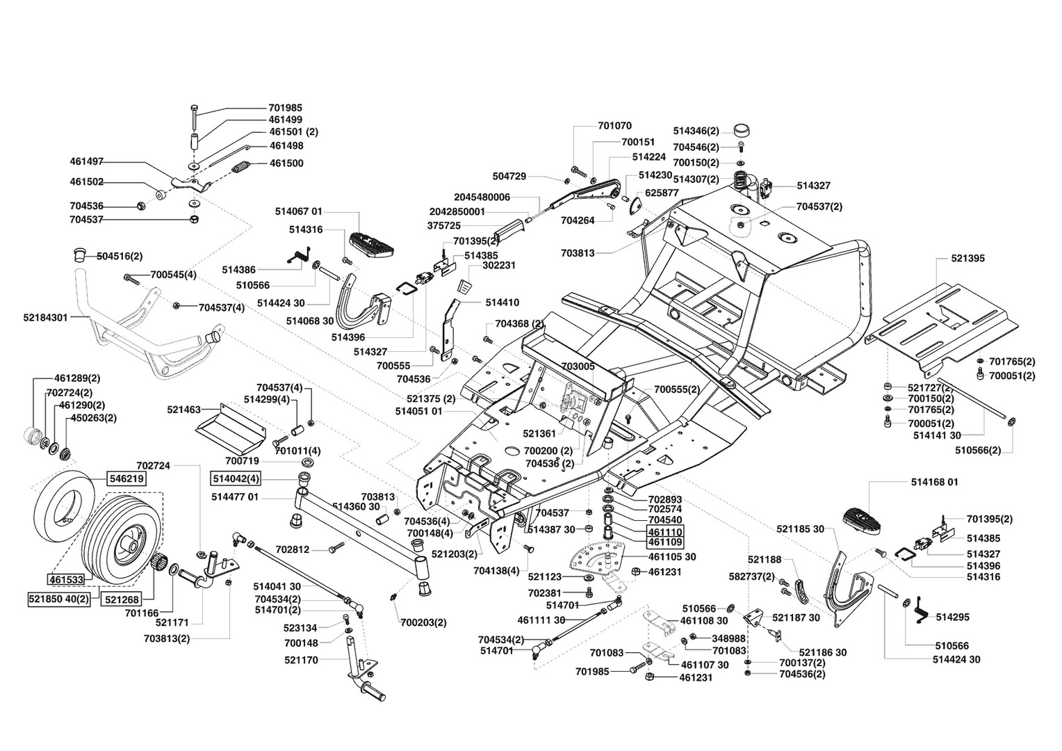 Zeichnungen von AL-KO Rasentraktor T 850 08/2005 - 02/2006 mit der Geräte-Artikelnr. 118704: