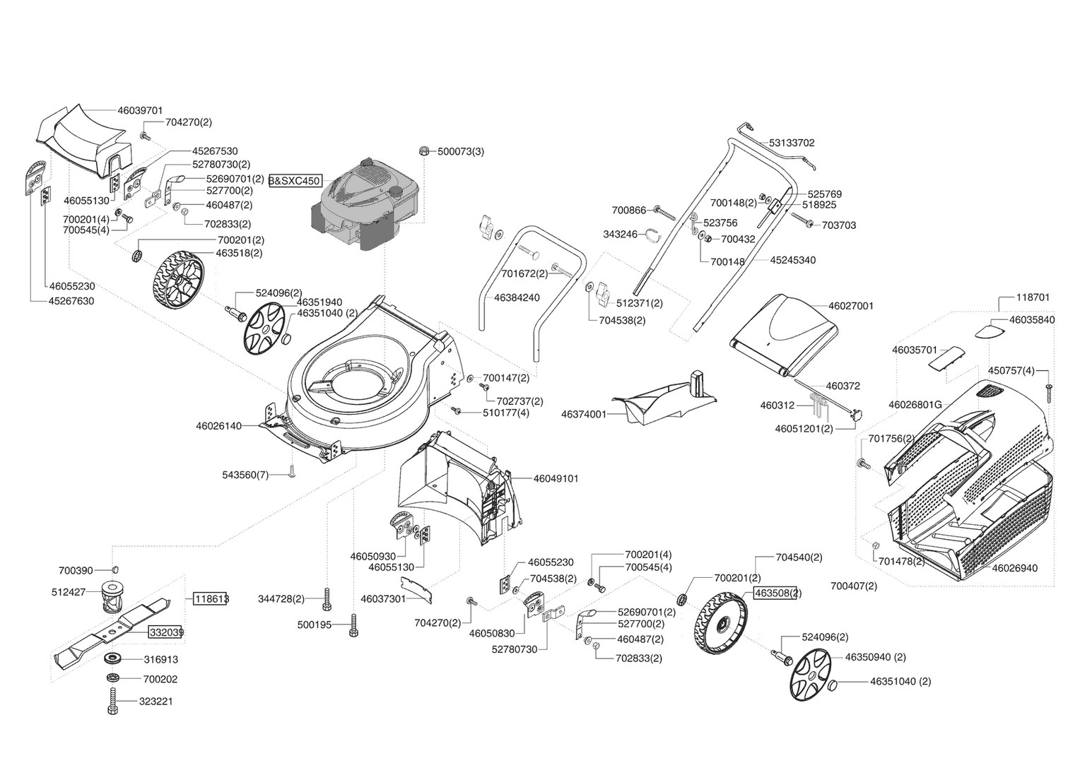 Zeichnungen von AL-KO Benzinrasenmäher SILVER COMFORT 46 B 08/2008 - 01/2009 mit der Geräte-Artikelnr. 119068:
