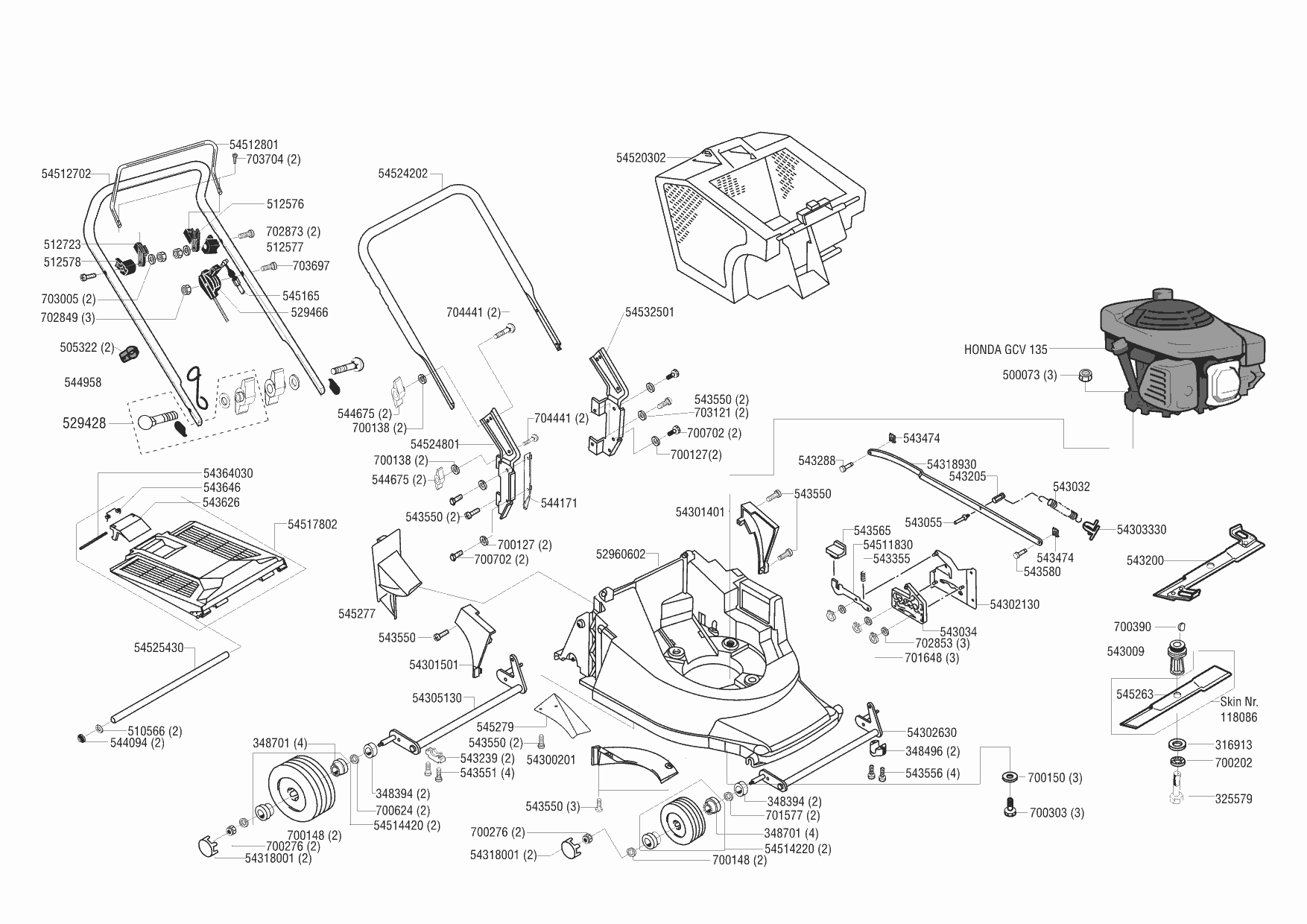 Zeichnungen von Concord Benzinrasenmäher 4200 B XXL 09/2000 - 02/2002 mit der Geräte-Artikelnr. 118096: