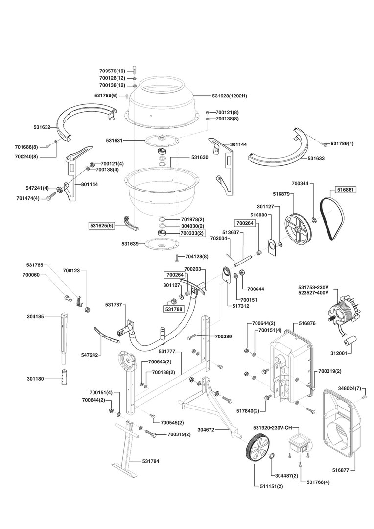 Zeichnungen von AL-KO Betonmörtelmaschinen Top 1202 H (Schweiz) 09/2005 - 10/2007 mit der Geräte-Artikelnr. 112283: