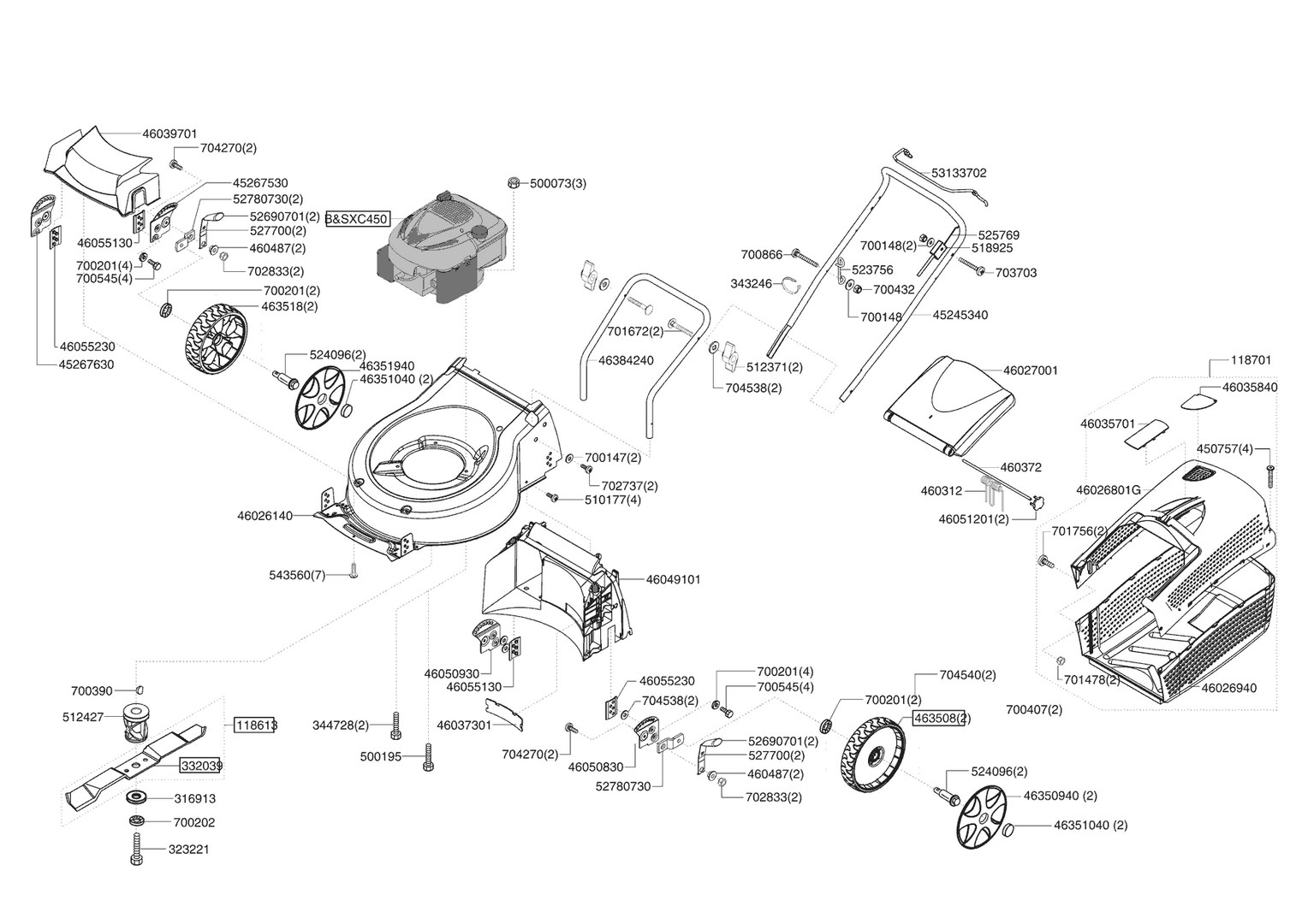 Zeichnungen von AL-KO Benzinrasenmäher SILVER COMFORT 46 B 09/2007 - 08/2008 mit der Geräte-Artikelnr. 119068: