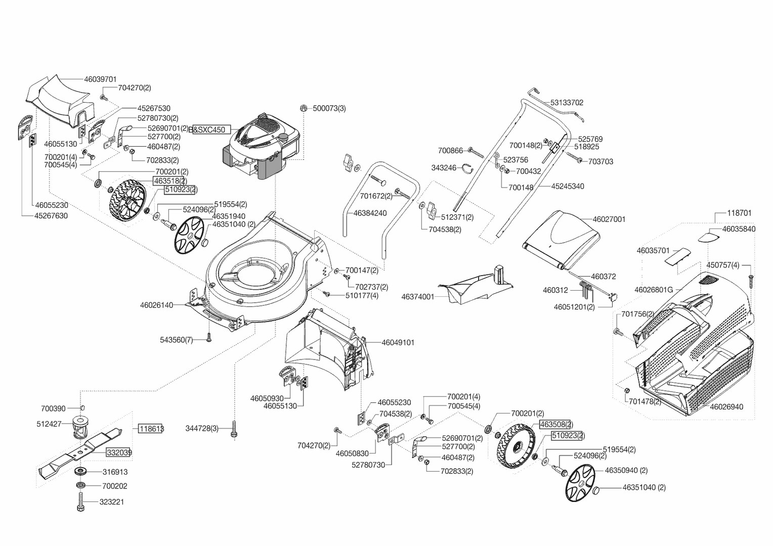 Zeichnungen von AL-KO Benzinrasenmäher SILVER COMFORT 46 B 09/2009 - 11/2010 mit der Geräte-Artikelnr. 119068: