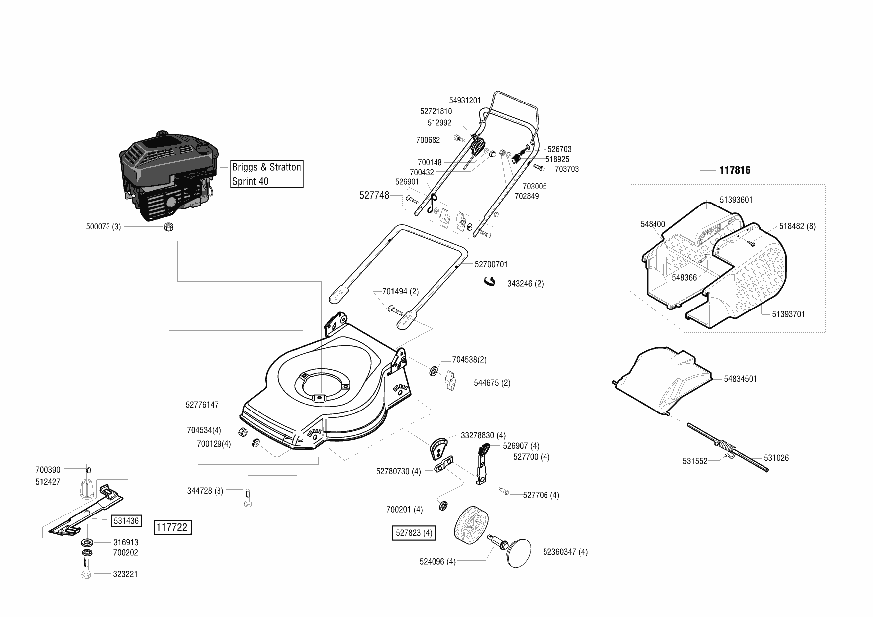 Zeichnungen von Dehner Benzinrasenmäher 47 B 10/2002 - 10/2003 mit der Geräte-Artikelnr. 118386: