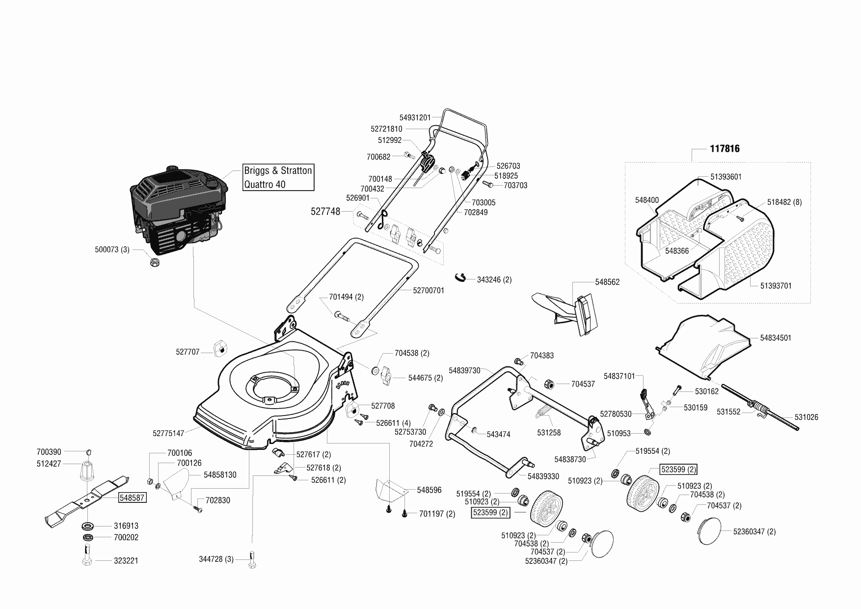 Zeichnungen von Dehner Benzinrasenmäher B 47 MZ 10/2002 - 10/2003 mit der Geräte-Artikelnr. 118387: