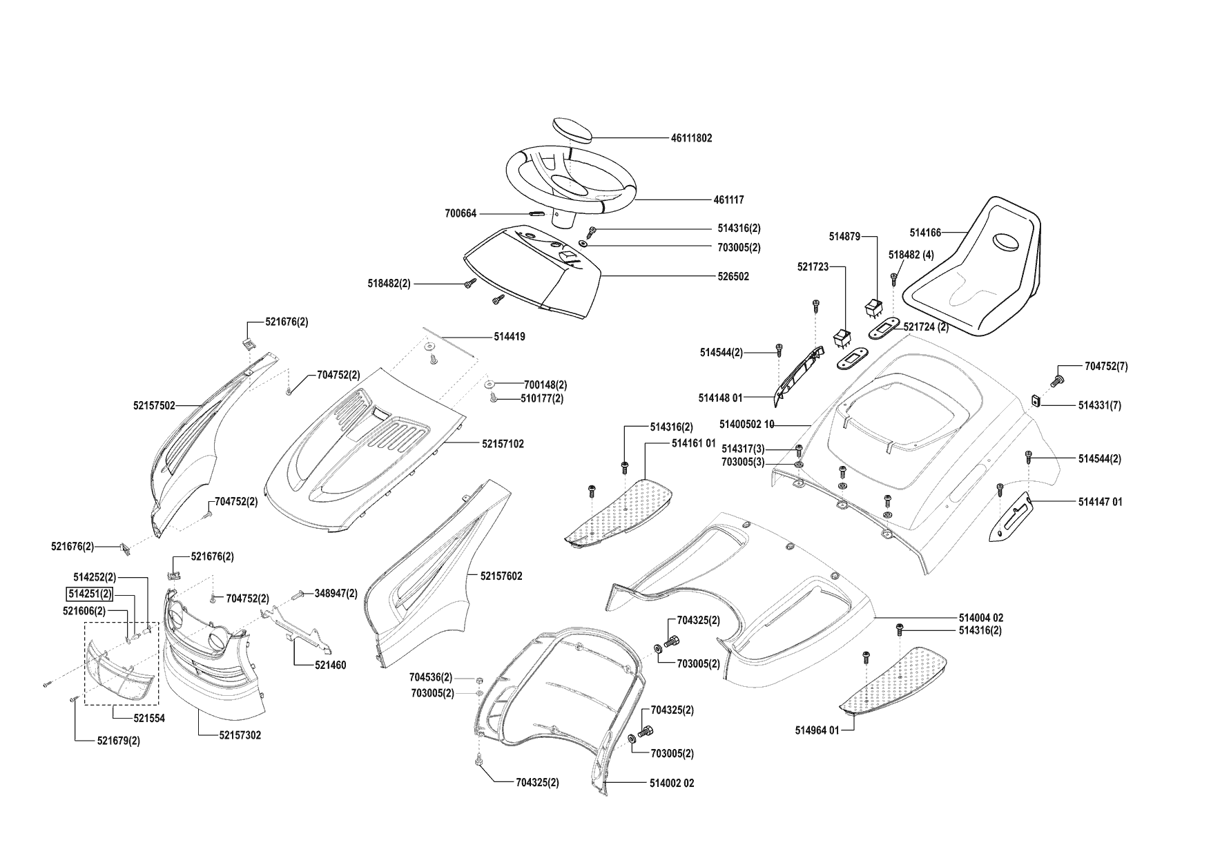 Zeichnungen von Concord Rasentraktor T18-102 HDE 10/2003 - 04/2004 mit der Geräte-Artikelnr. 118335: